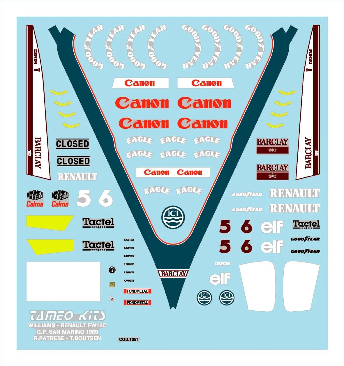 1:43 waterslide serigraphed decals Williams Renault FW12C S.Marino GP 1989 Patrese/Boutsen Tameo TMK094