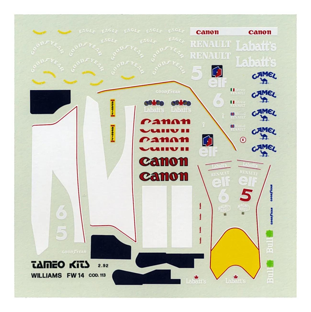 1:43 waterslide serigraphed decals Williams FW14 Italian GP 1991 Mansell/Patrese Tameo TMK148