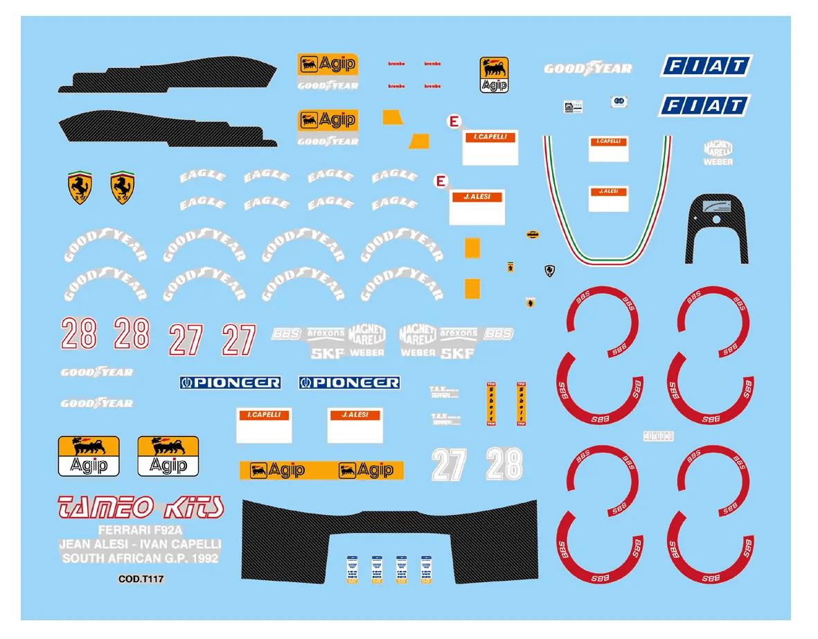 1:43 waterslide serigraphed decals Ferrari F92A South African GP 1992 Alesi/Capelli Tameo TMK152