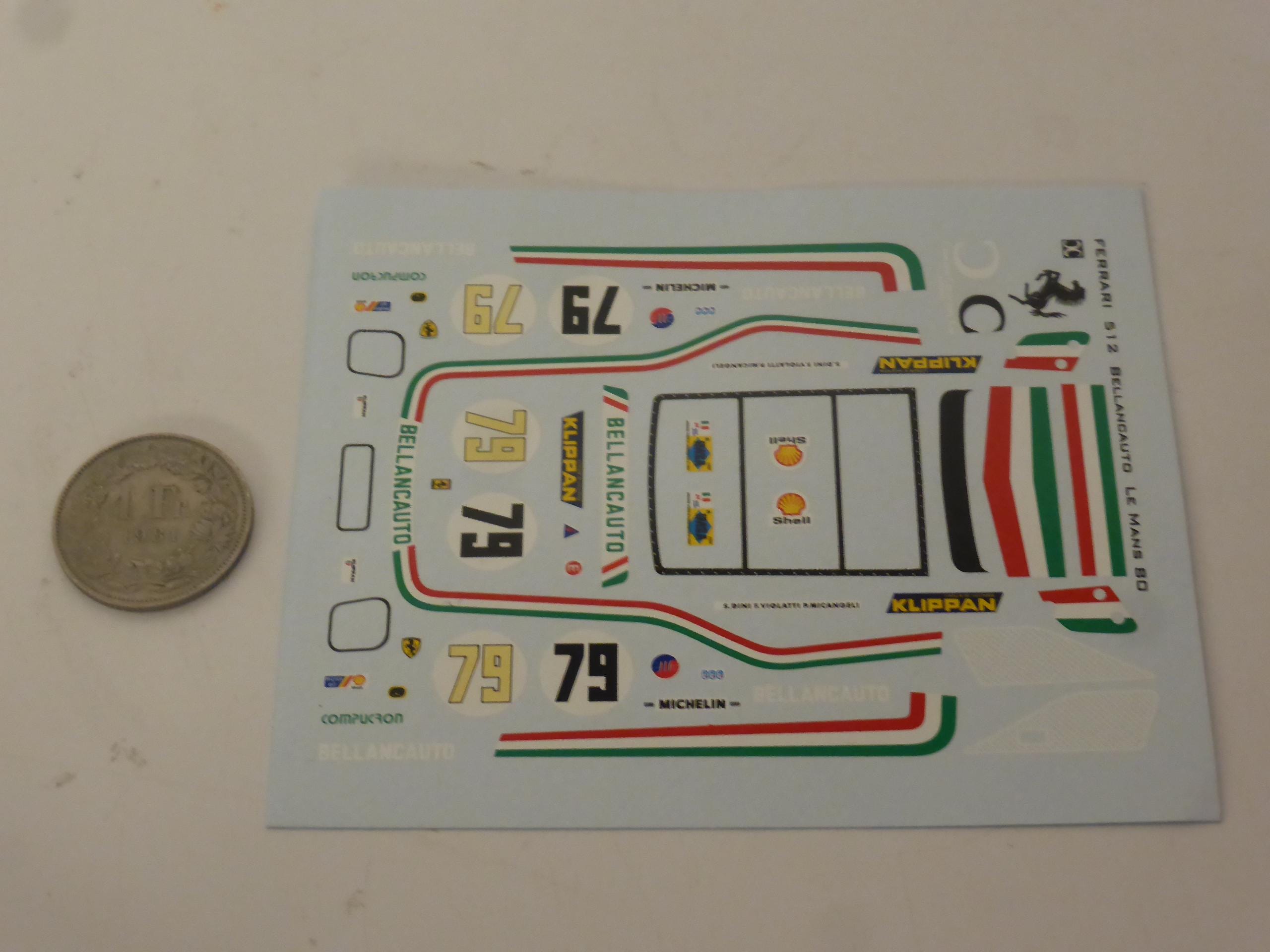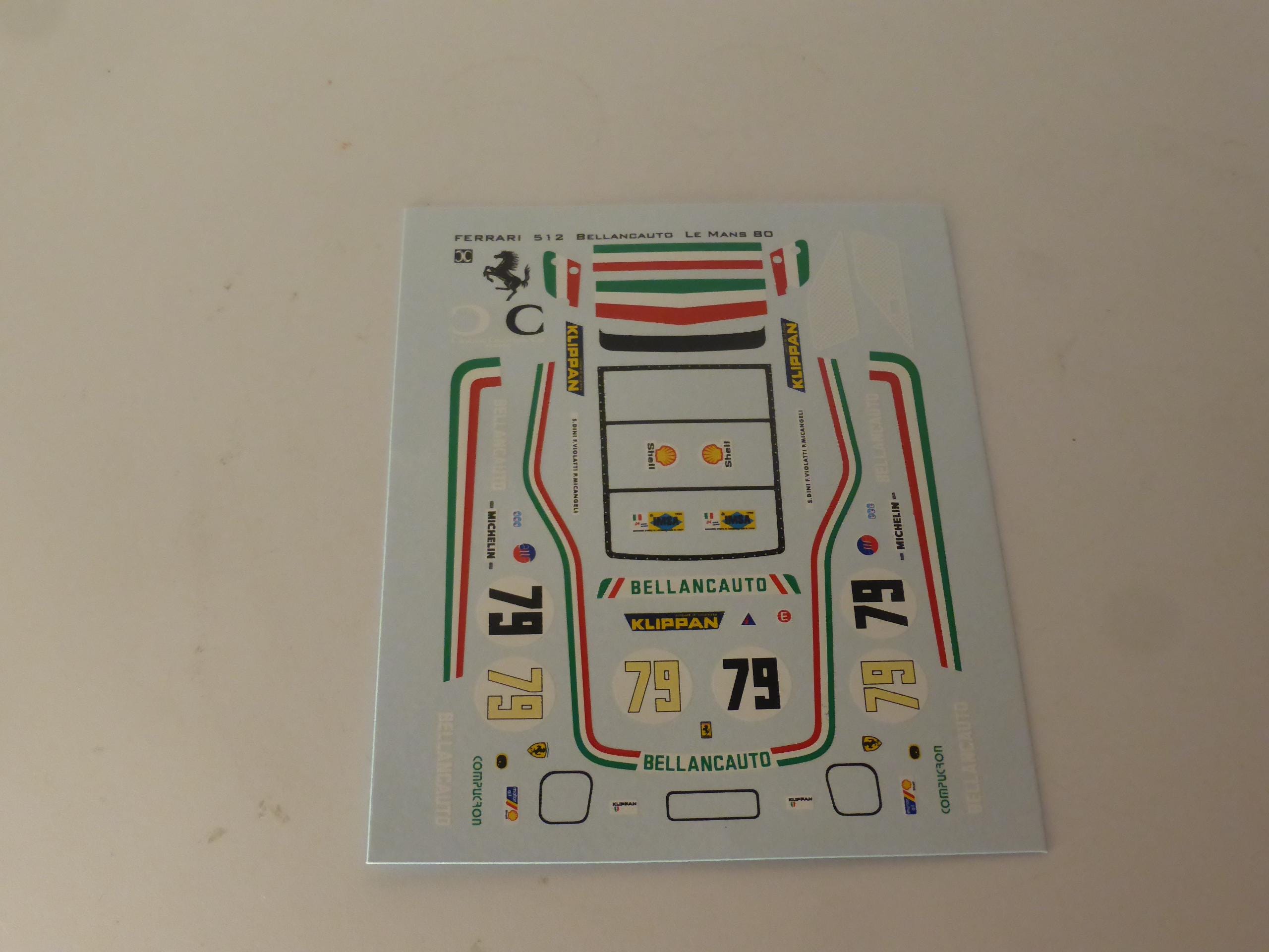 1:43 waterslide decals sheet Ferrari 512BB Bellancauto Le Mans 1980 #79 Dini/Violati/Micangeli