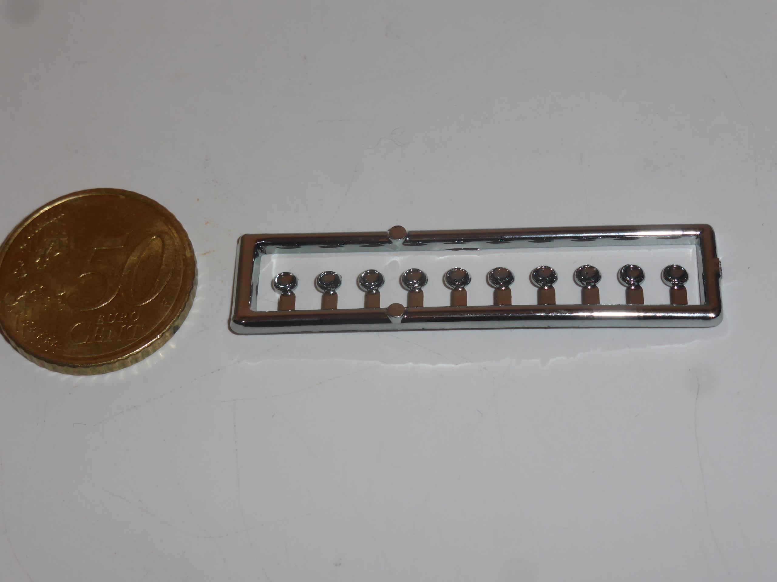 Round CLEAR lights, chromed plastic rim and resin drop. Pack of 10 lights.