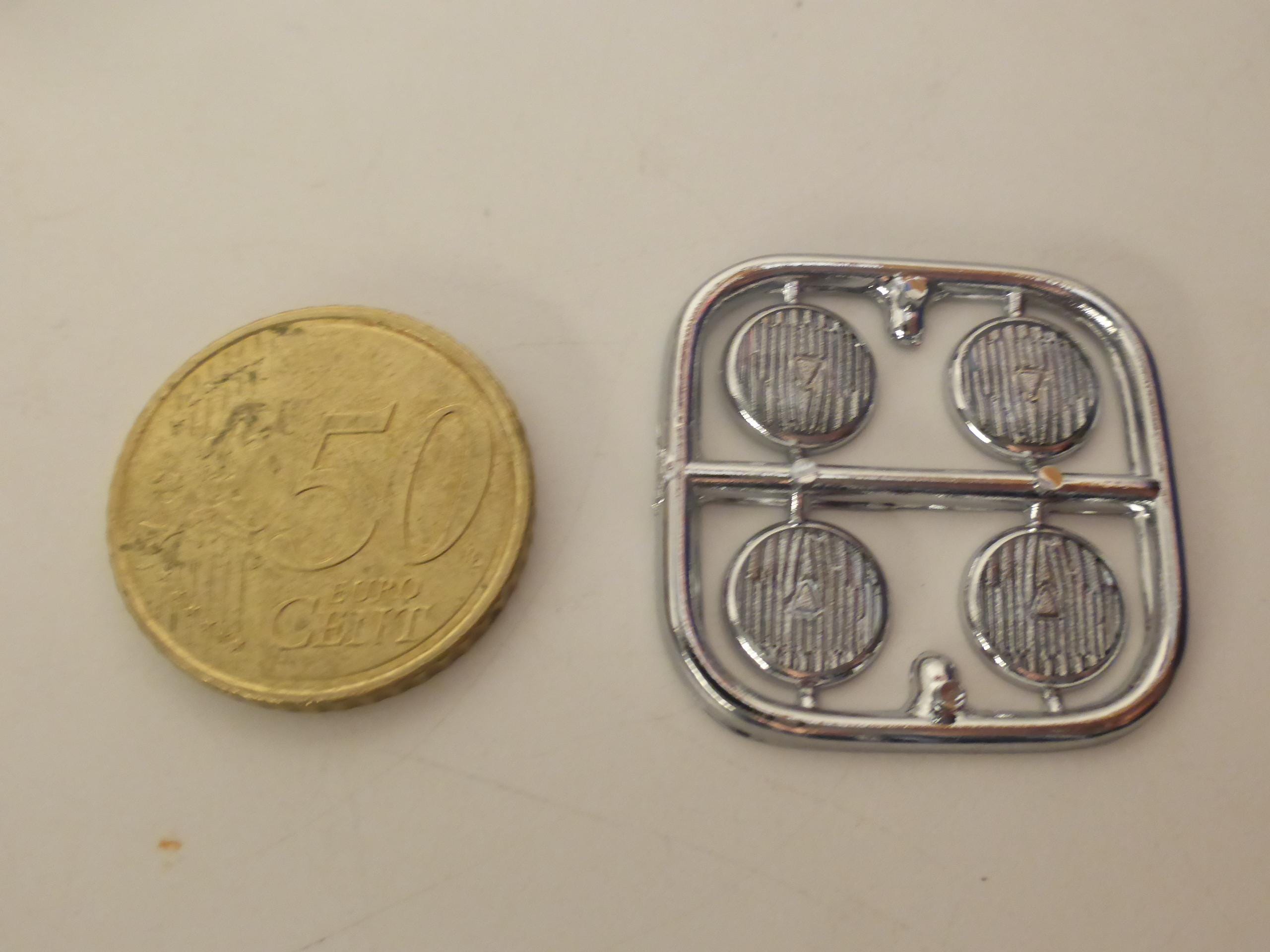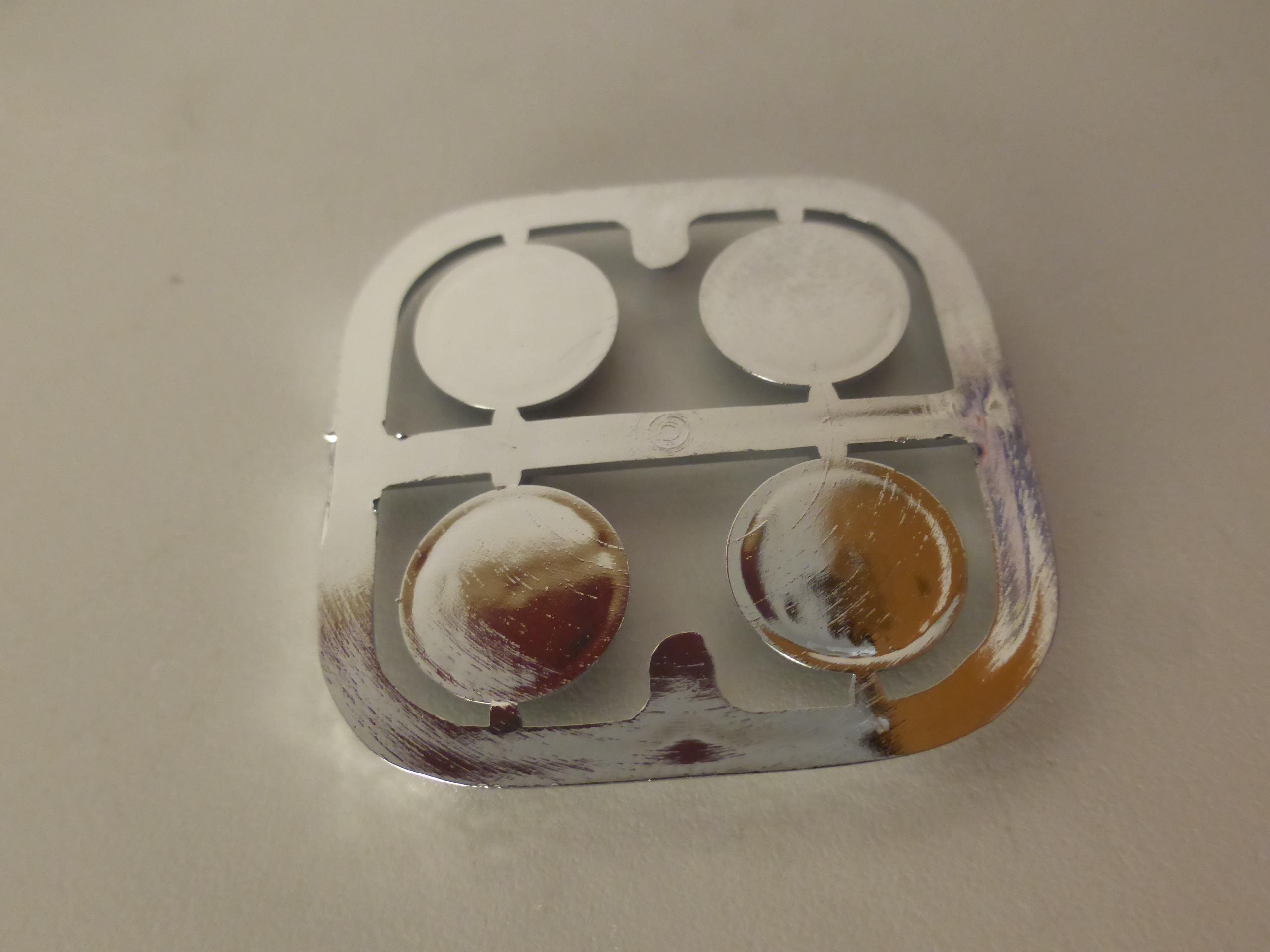Round CLEAR lights, chromed plastic rim and resin drop. Pack of 4 lights. Ideal for 1:18 scale model cars, for example.