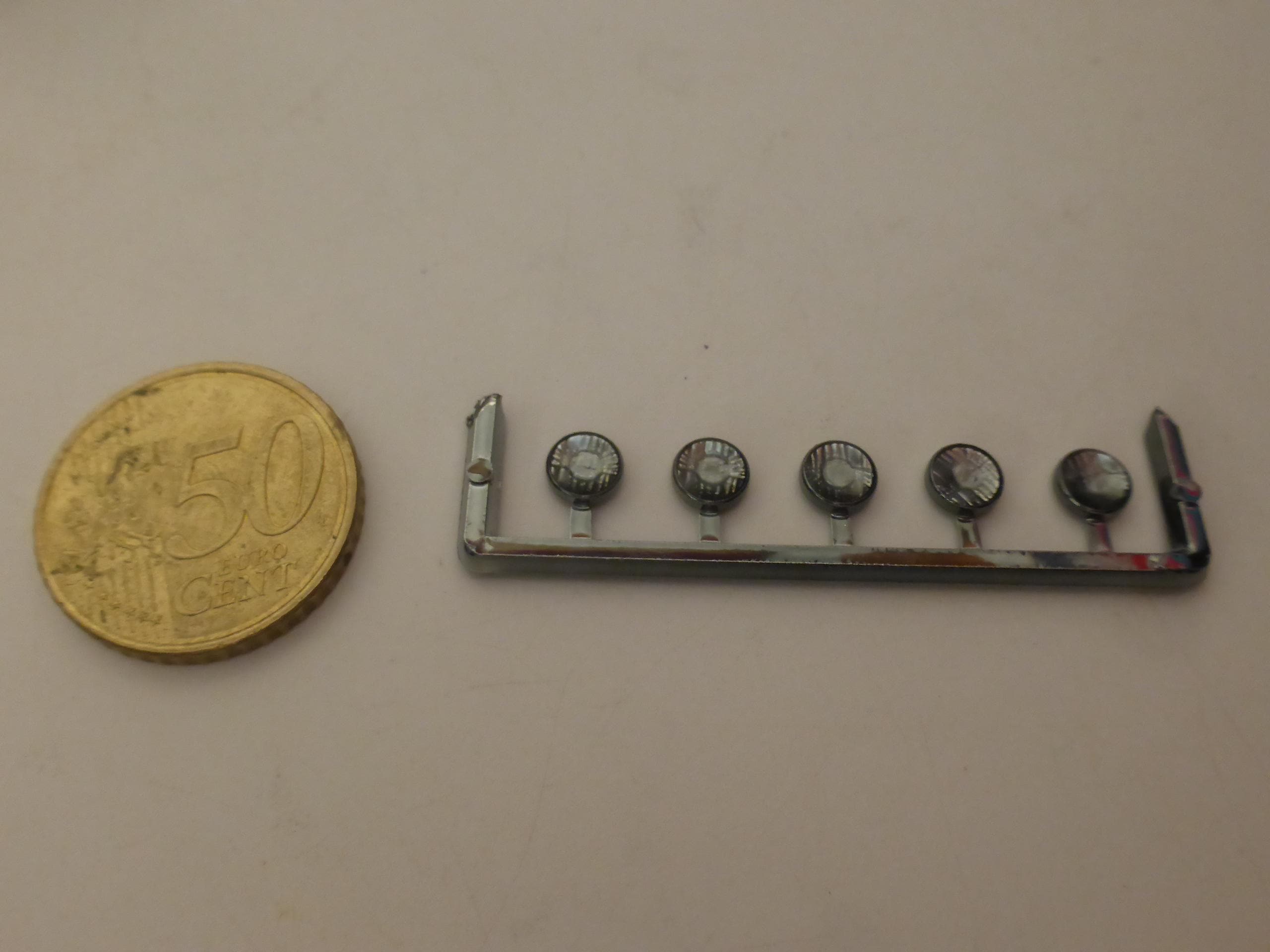 Round CLEAR lights, chromed plastic rim and resin drop. Pack of 5 lights.