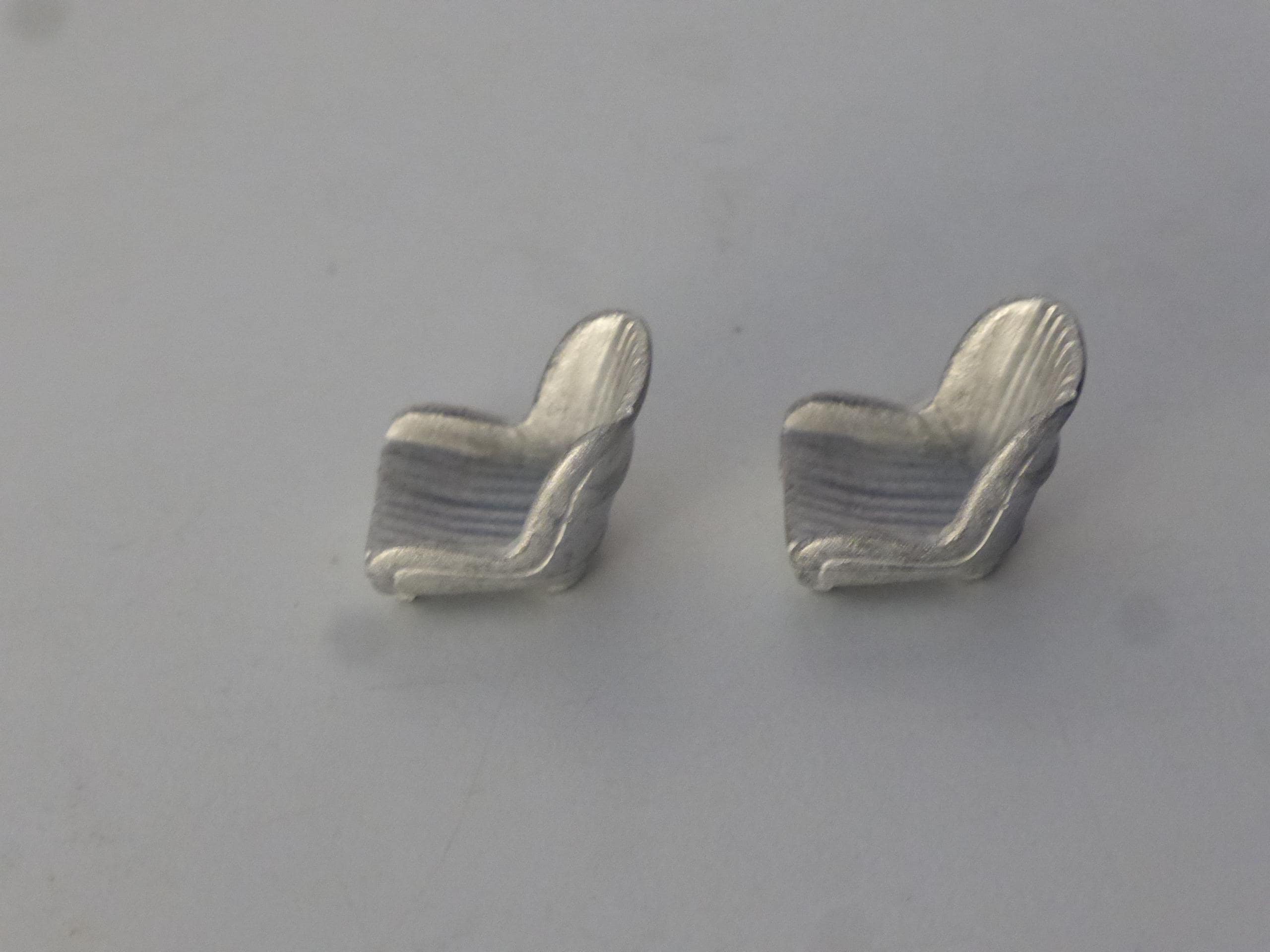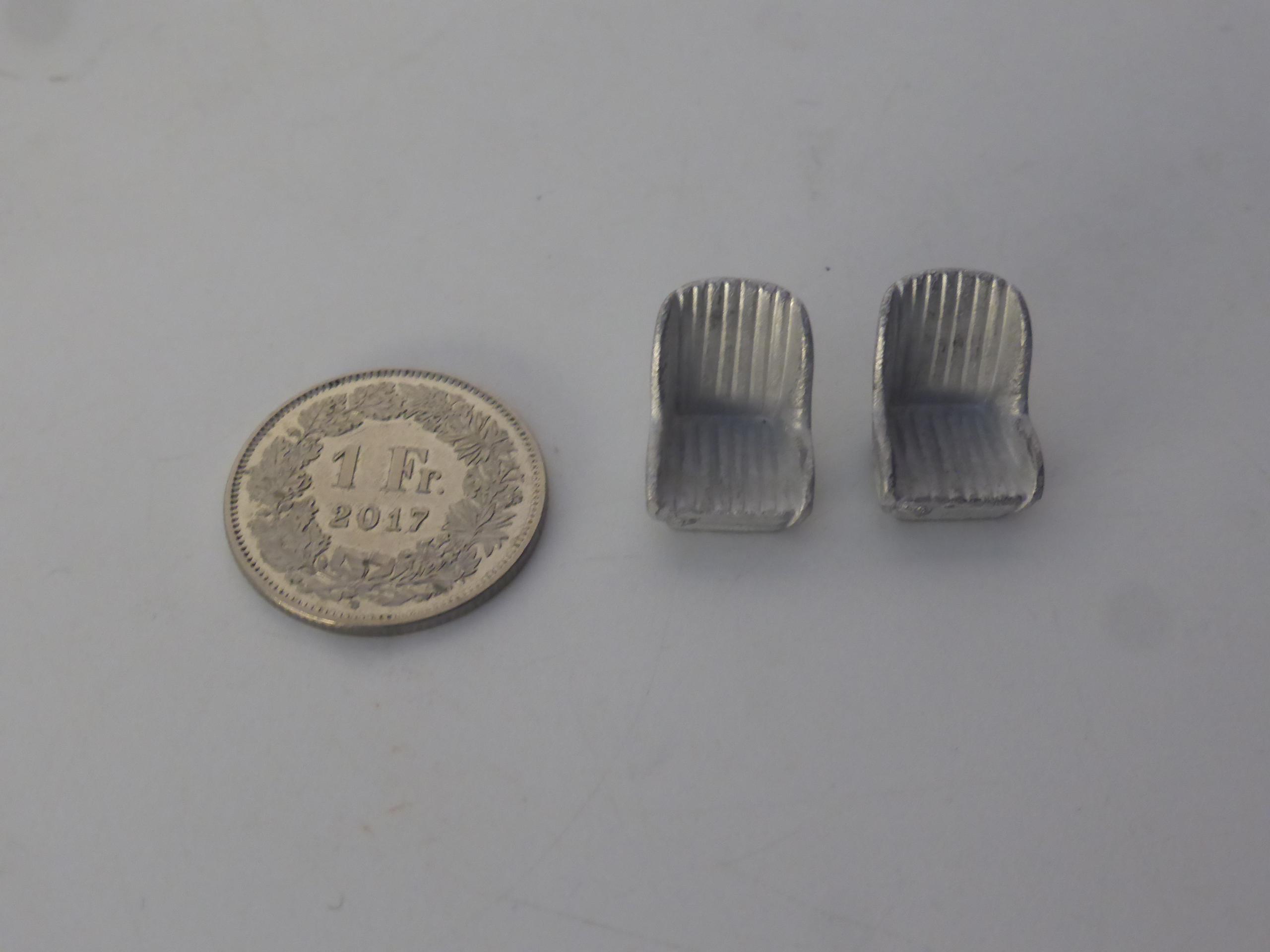 1:43 scale white metal seats for sportscars and GT cars of the 60s such as the Ferrari 250 LM. To paint.