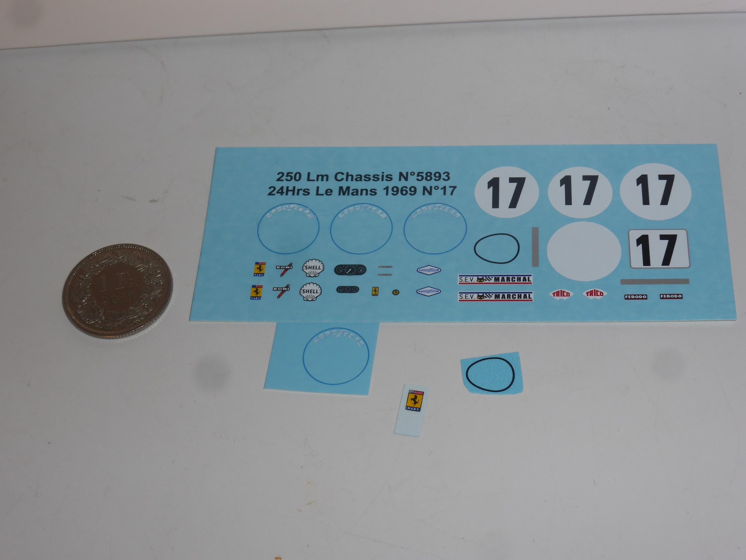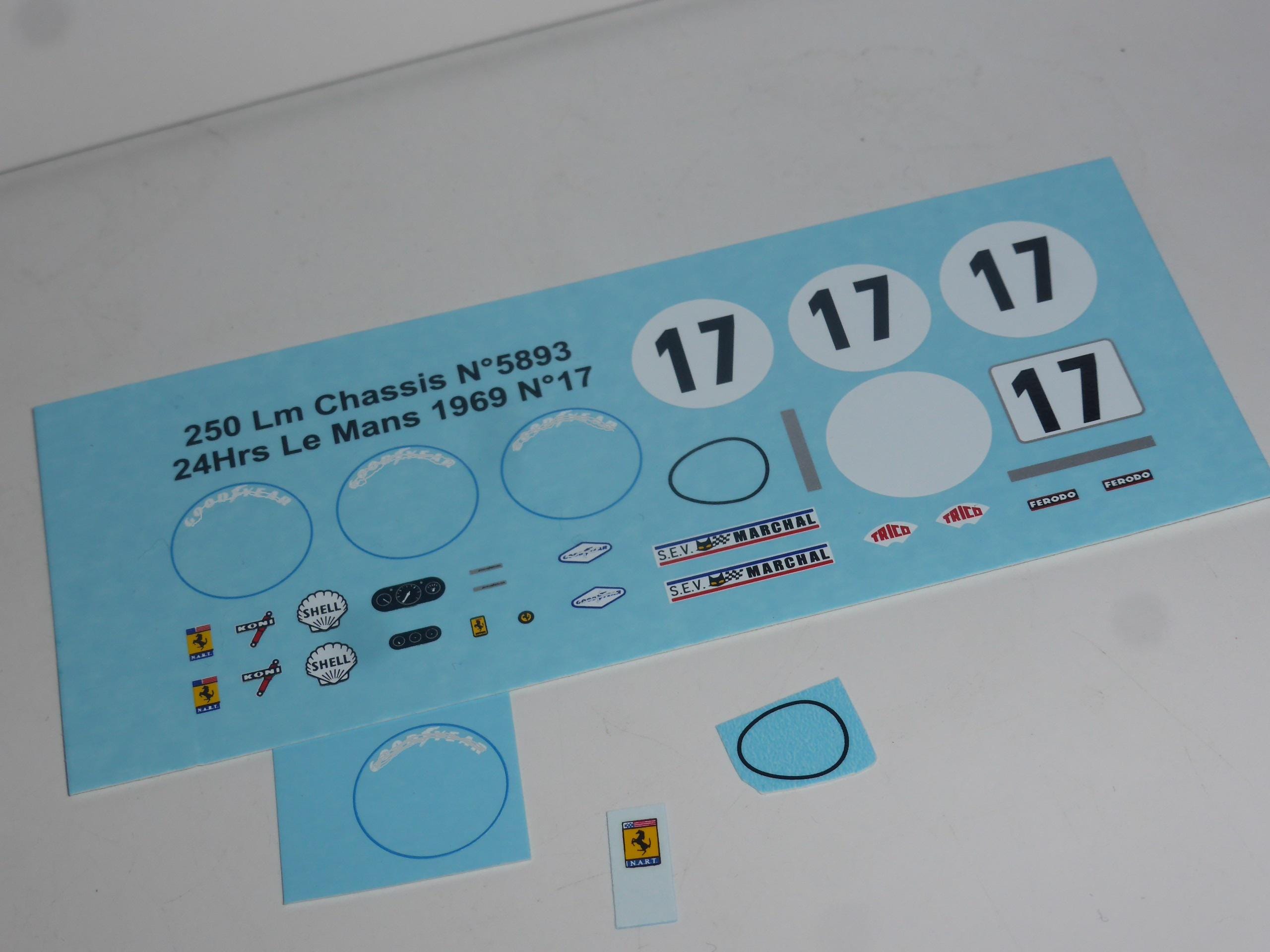 1:43 waterslide decals for Ferrari 250 LM 5893GT NART Le Mans 1969 #17 Zeccoli/Posey/Rodriguez