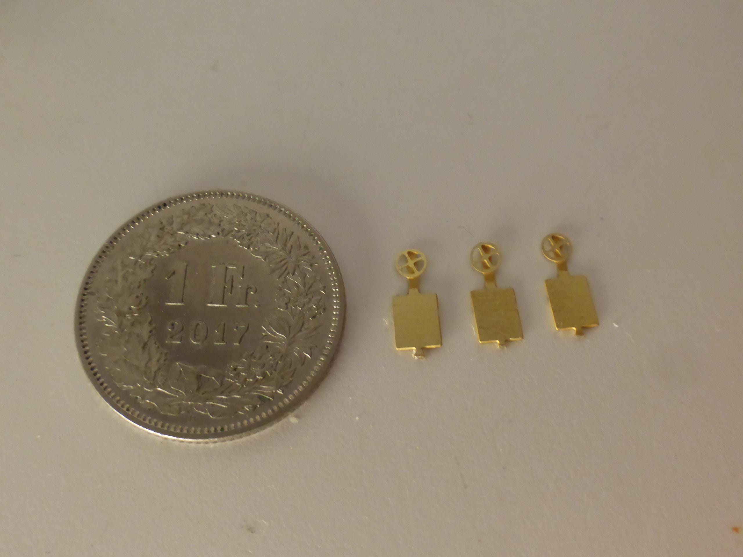 Photoetched parking brake control wheel for trailers and semi-trailers of the 70-80s (3 pieces). A rare and very useful ancillary.