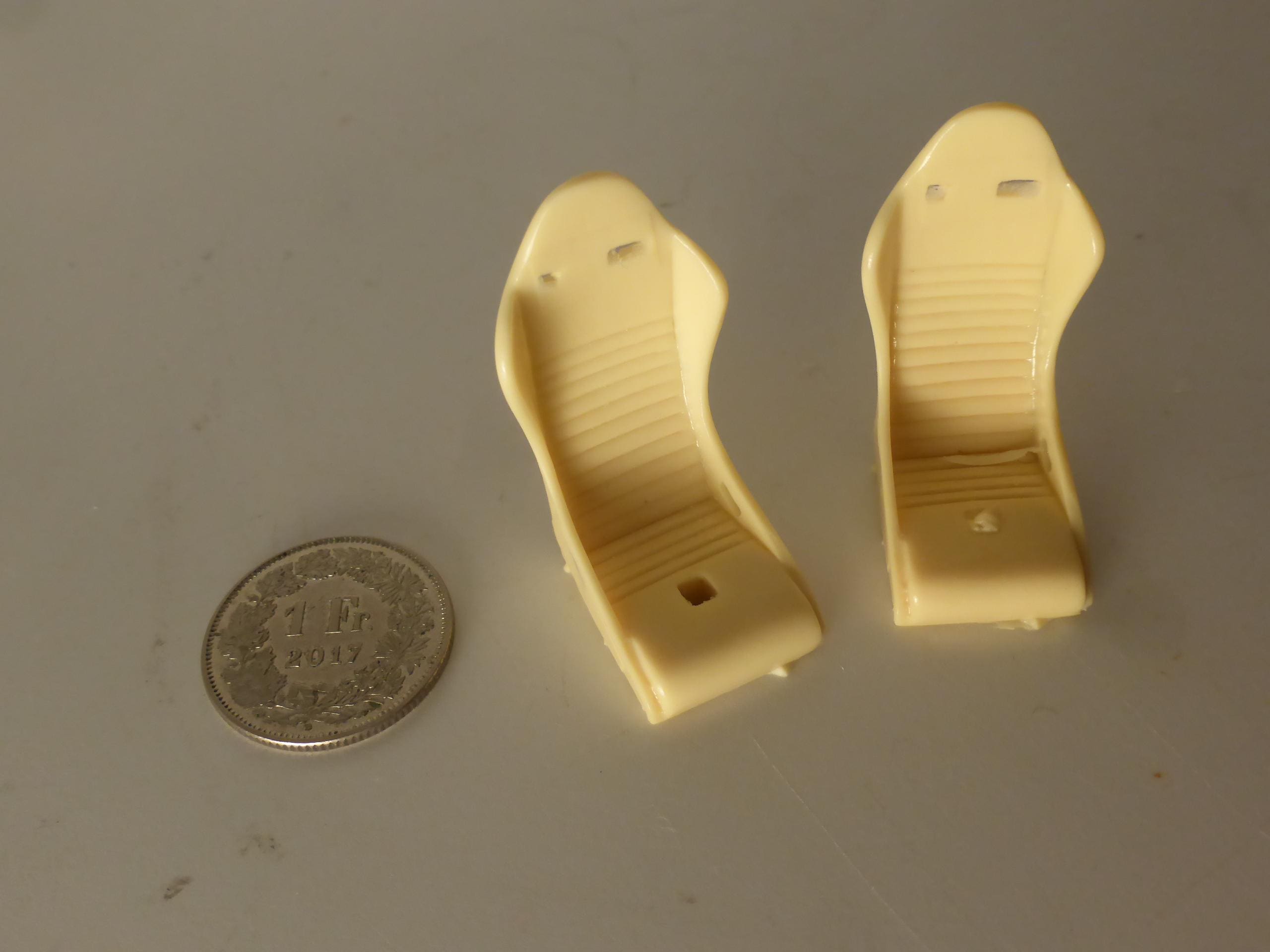 1:24 resin seats (pack of 2) for rally and racing cars. To paint.